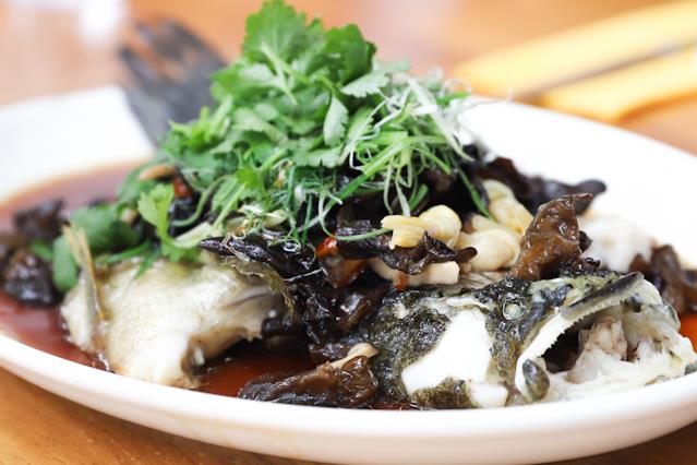 Steam Halibut Fillet with Black Fungus and Wolfberries in Soy Sauce 港蒸比目鱼配黑木耳杞子